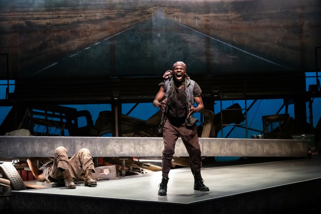 From everything I’ve said so far, it probably sounds like a grim, gritty play — but “The Brothers Size” doesn’t fit in that box. It was also funny, and visual, and musical, and experimental. For example, throughout the show, the characters break the fourth wall to announce stage directions before they perform them, so you hear it verbalized before you see it happen. Dream sequences of Yoruba cosmology featured neon-lit garb surpassing Coachella standards (credit to Dominique Fawn Hill, costume designer), which brought a fantastical edge that managed to fit naturally within the story. The stage was layered with levels of platforms that built dimension and real distance for the characters to scale (credit to Brittany Vasta, scenic designer.)